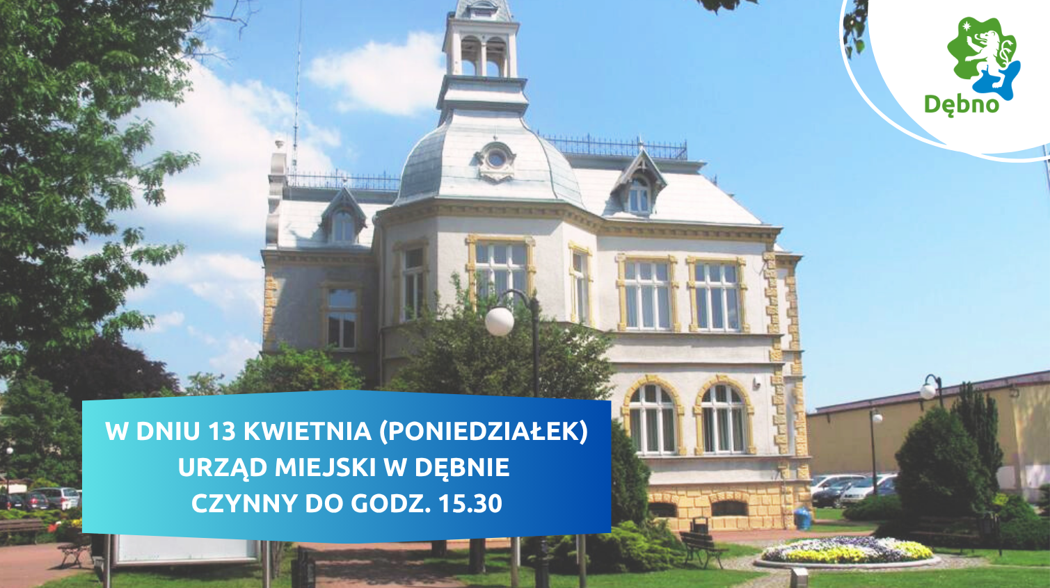 Uprzejmie informujemy, iż 13 kwietnia (poniedziałek) Urząd Miejski w Dębnie i Urząd Stanu...