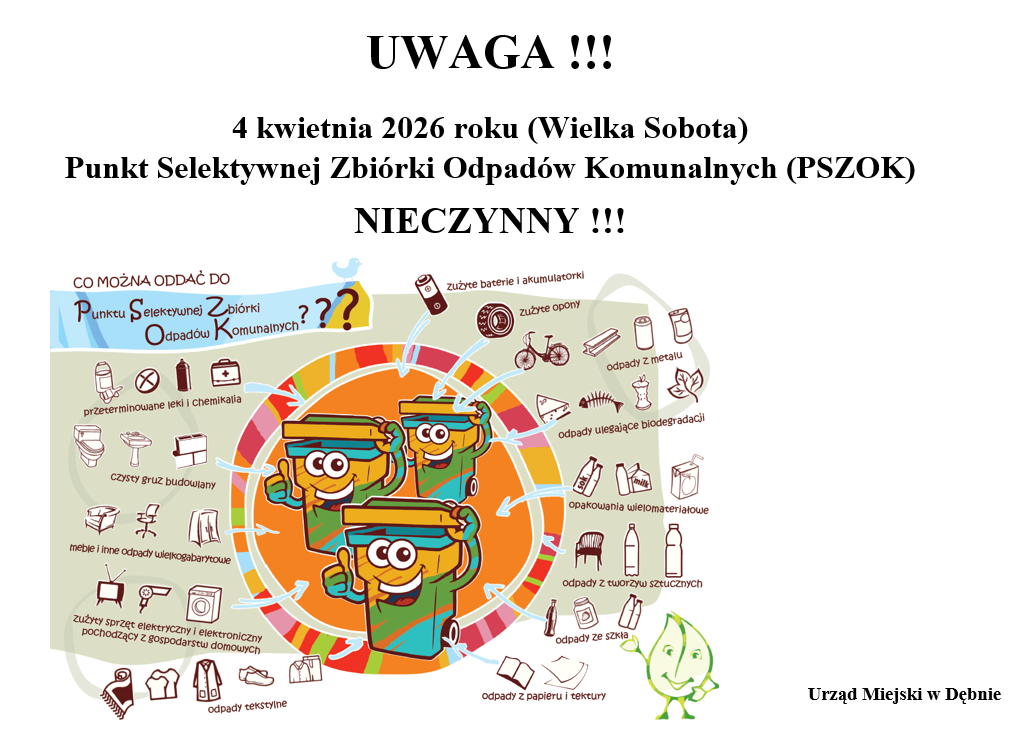 4 kwietnia 2026 roku (Wielka Sobota) Punkt Selektywnej Zbiórki Odpadów Komunalnych (PSZOK)...
