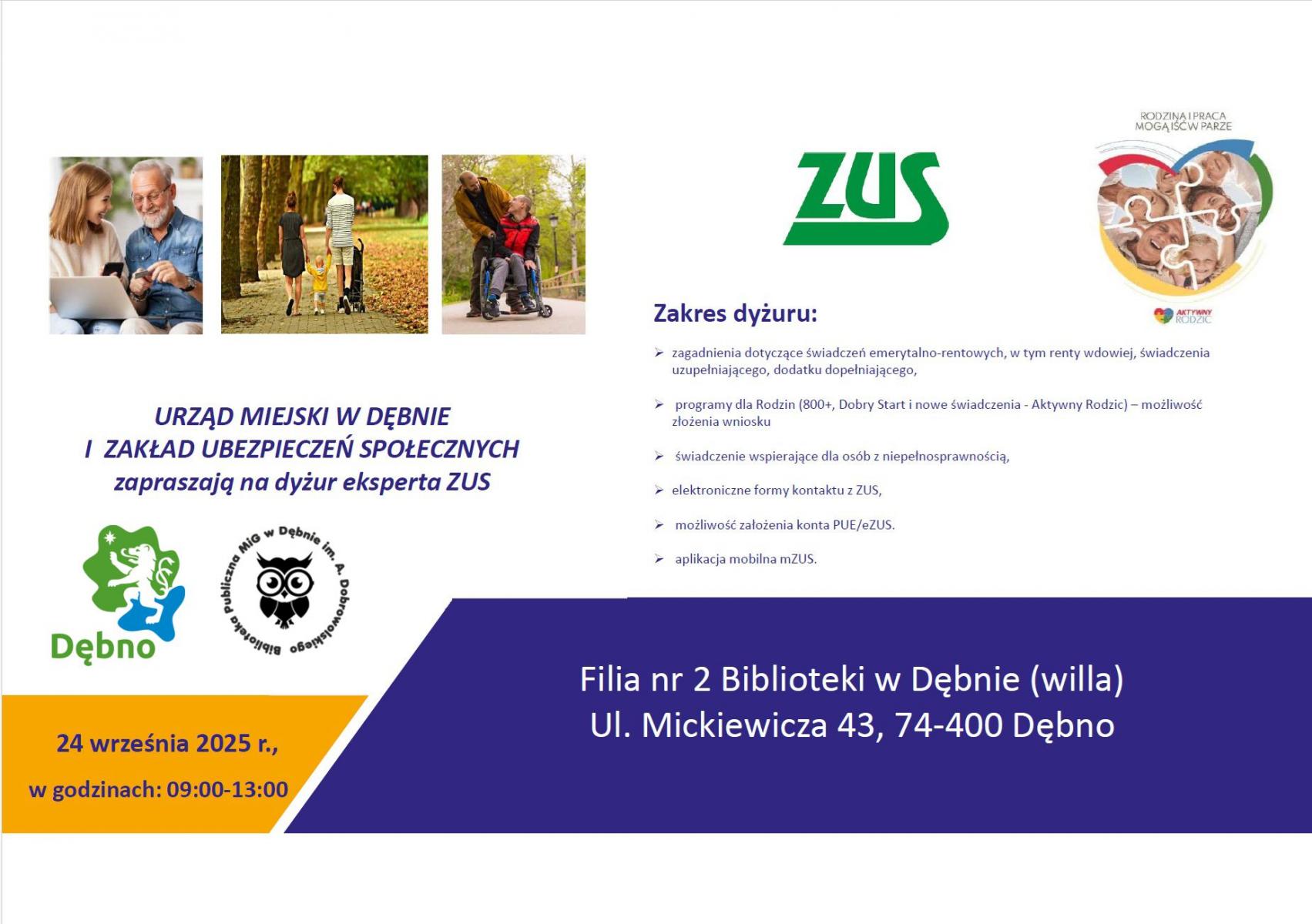 Urząd Miejski w Dębnie i Zakład Ubezpieczeń Społecznych zapraszają na dyżur eksperta ZUS,...