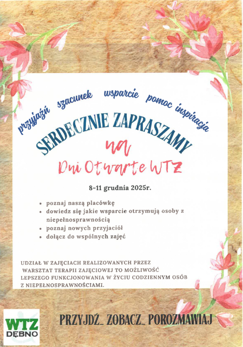 W dniach 8 - 11 grudnia Warsztat Terapii Zajęciowej zaprasza na "DNI OTWARTE", w trakcie...