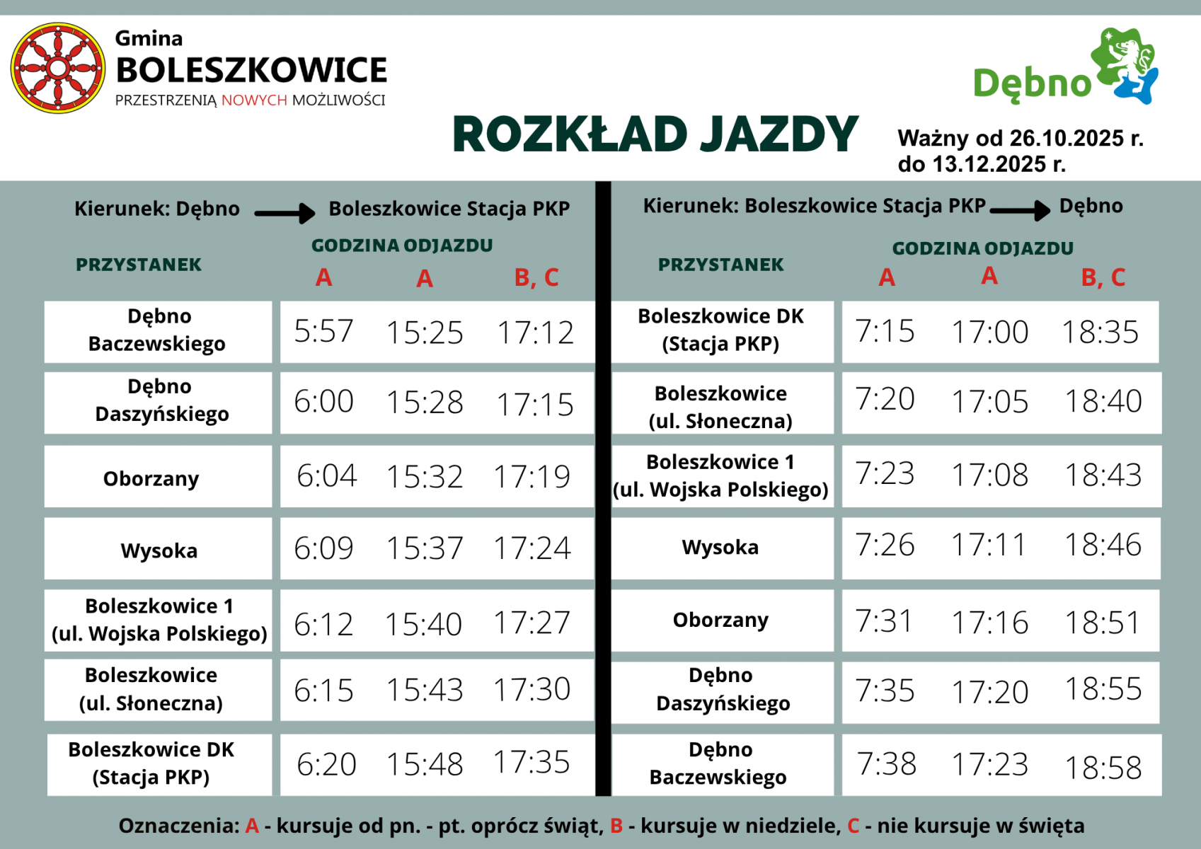 Od 26 października br. obowiązywać będzie nowy rozkład jazdy autobusu na trasie Dębno -...