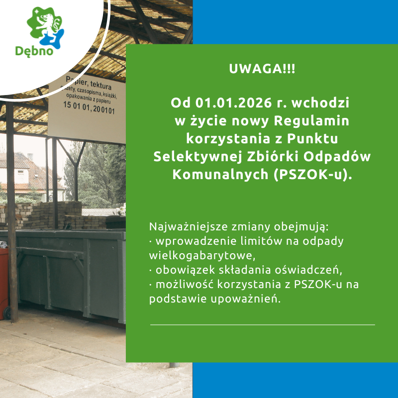 Gmina Dębno informuje, że od 01.01.2026 r. wchodzi w życie nowy Regulamin korzystania z...
