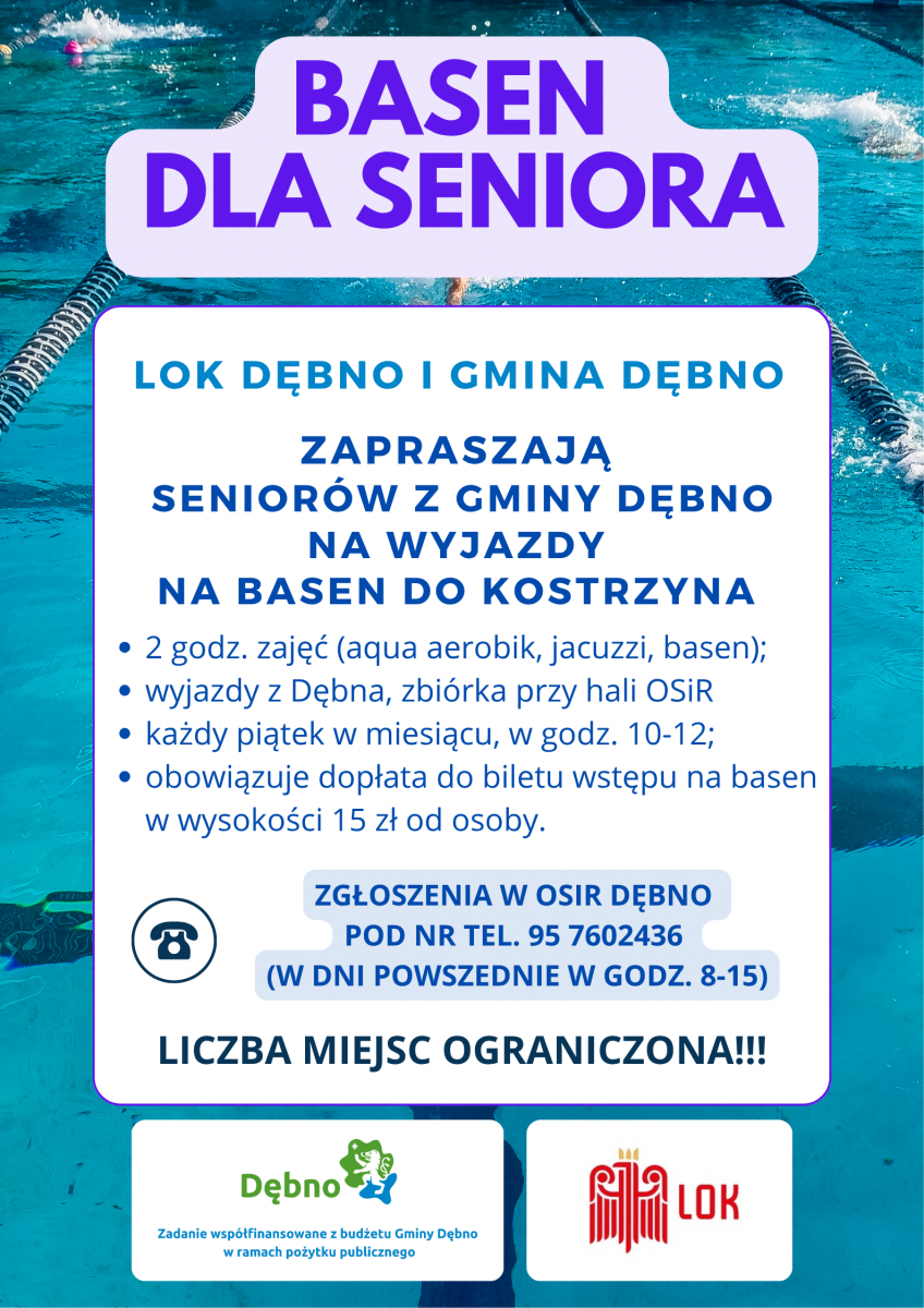 Ponownie ruszyły wyjazdy na basen dla seniorów 60+ z terenu miasta i gminy Dębno. Zadanie...