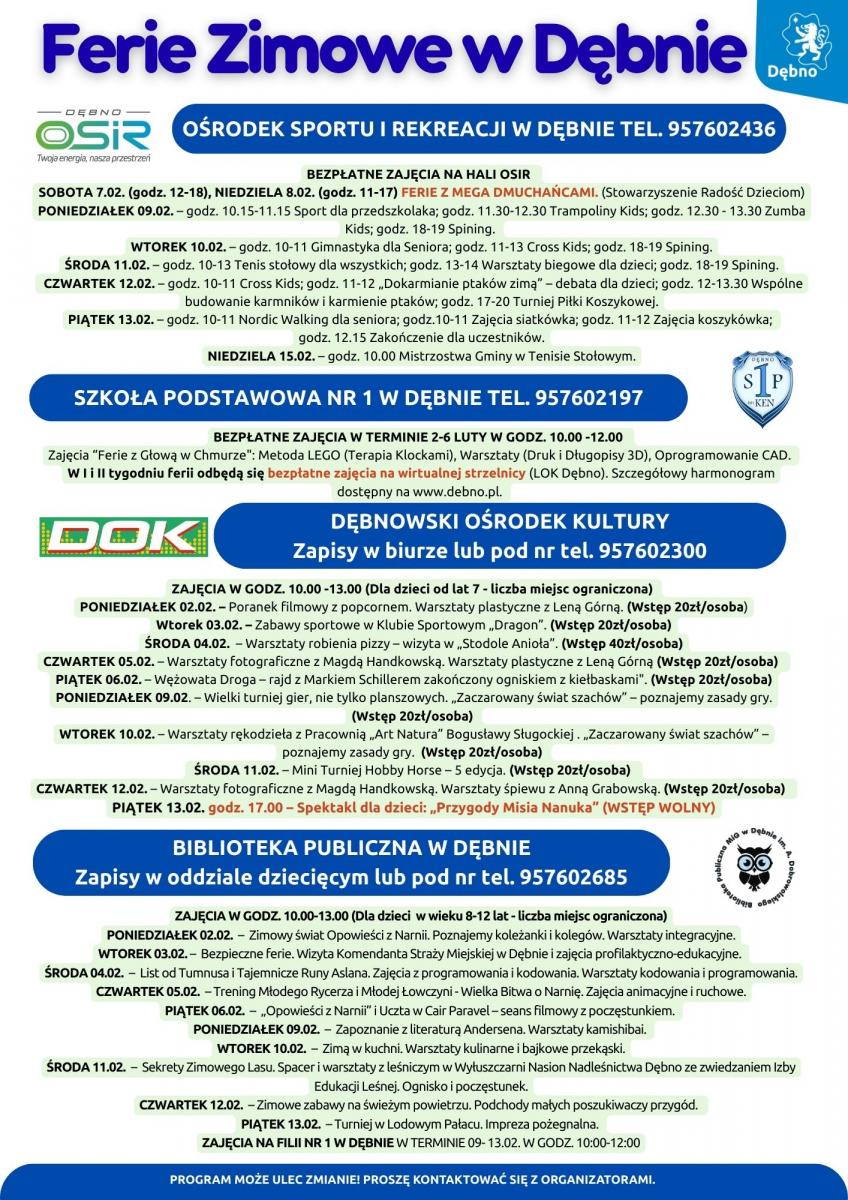 Ferie zimowe w mieście i gminie Dębno