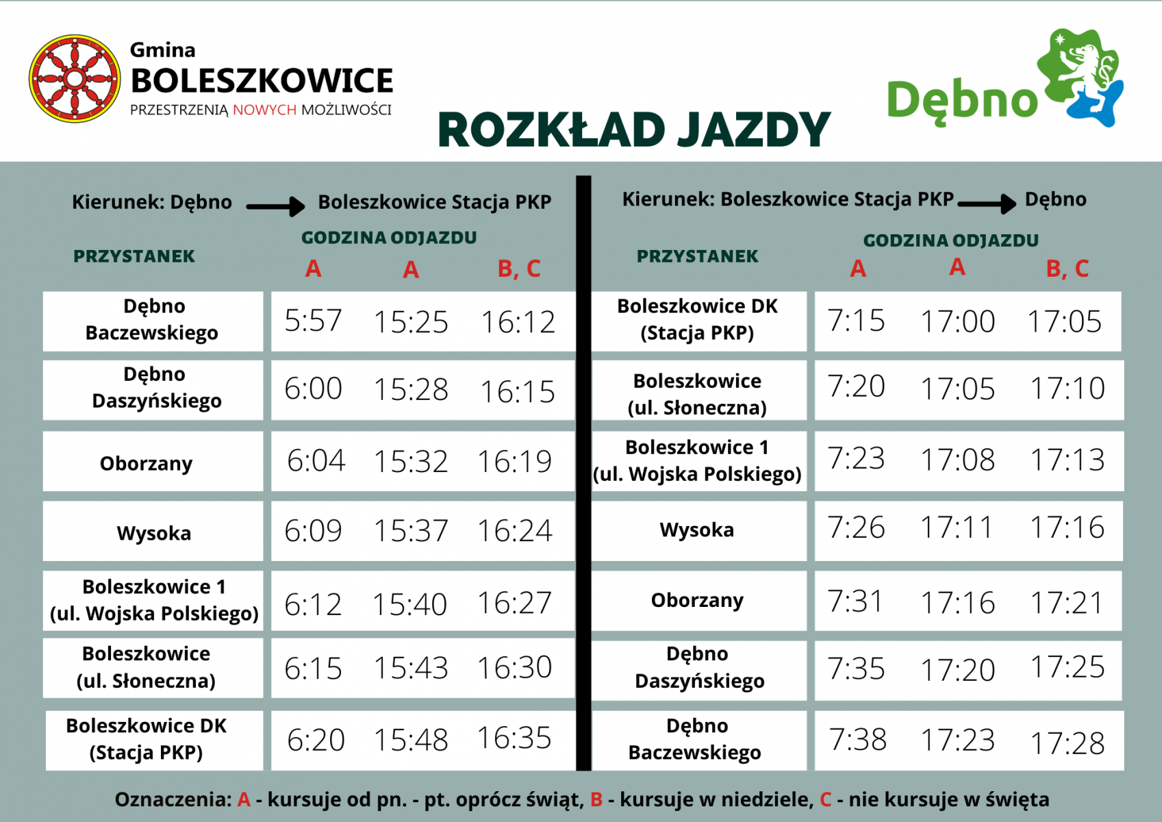 Od 21 grudnia br. obowiązywać będzie nowy rozkład jazdy autobusu na trasie Dębno - Wysoka -...