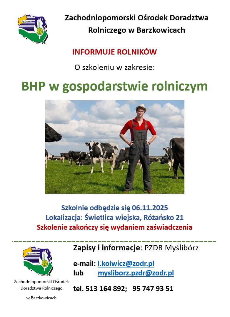 Zachodniopomorski Ośrodek Doradztwa Rolniczego w Barzkowicach informuje rolników o szkoleniu...
