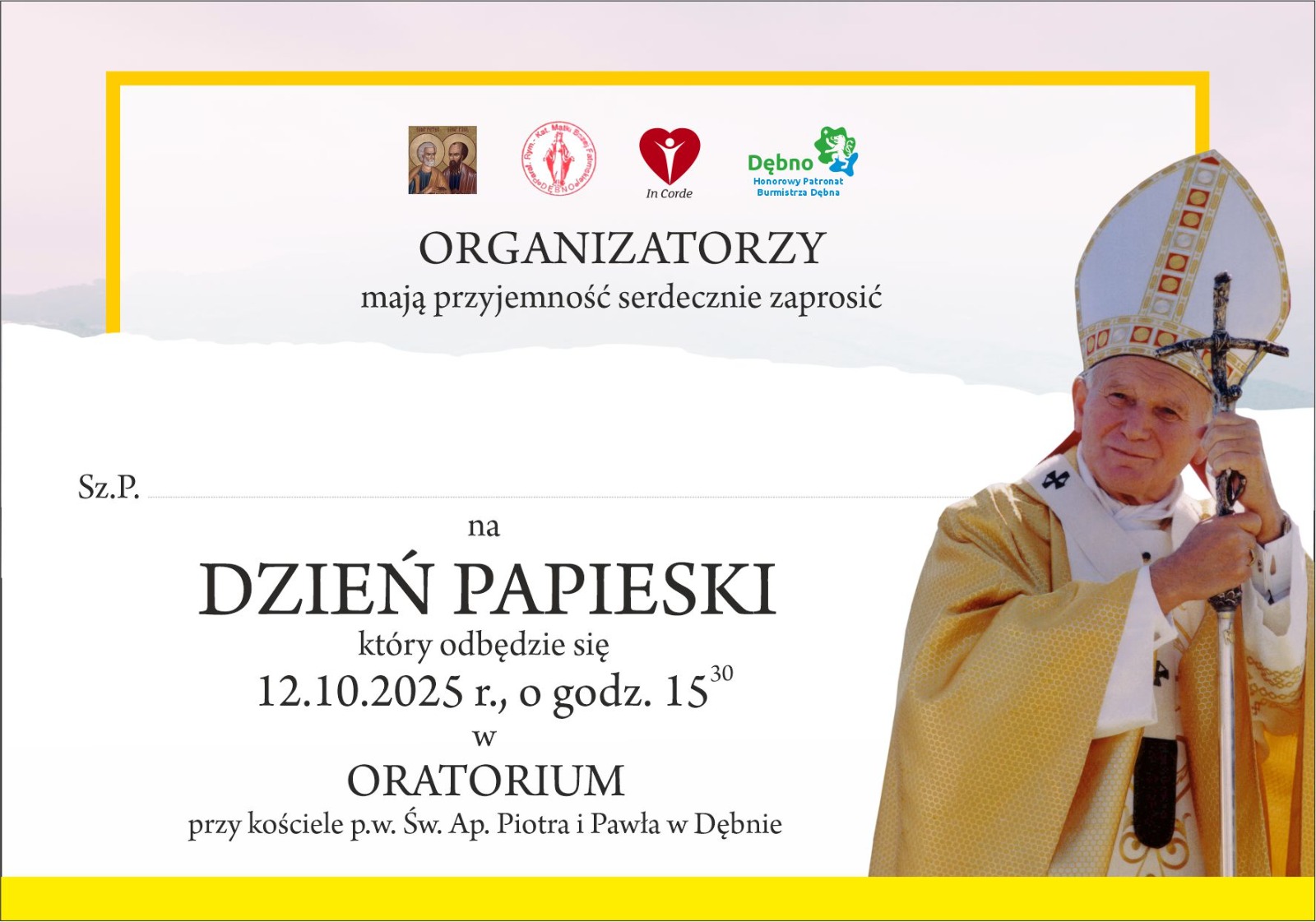 Stowarzyszenie In Corde zaprasza wszystkich mieszkańców na obchody Dnia Papieskiego, które...